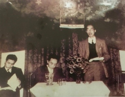 1952年10月1日姚桐斌(右一)在伦敦庆祝我国国庆节招待会上发言